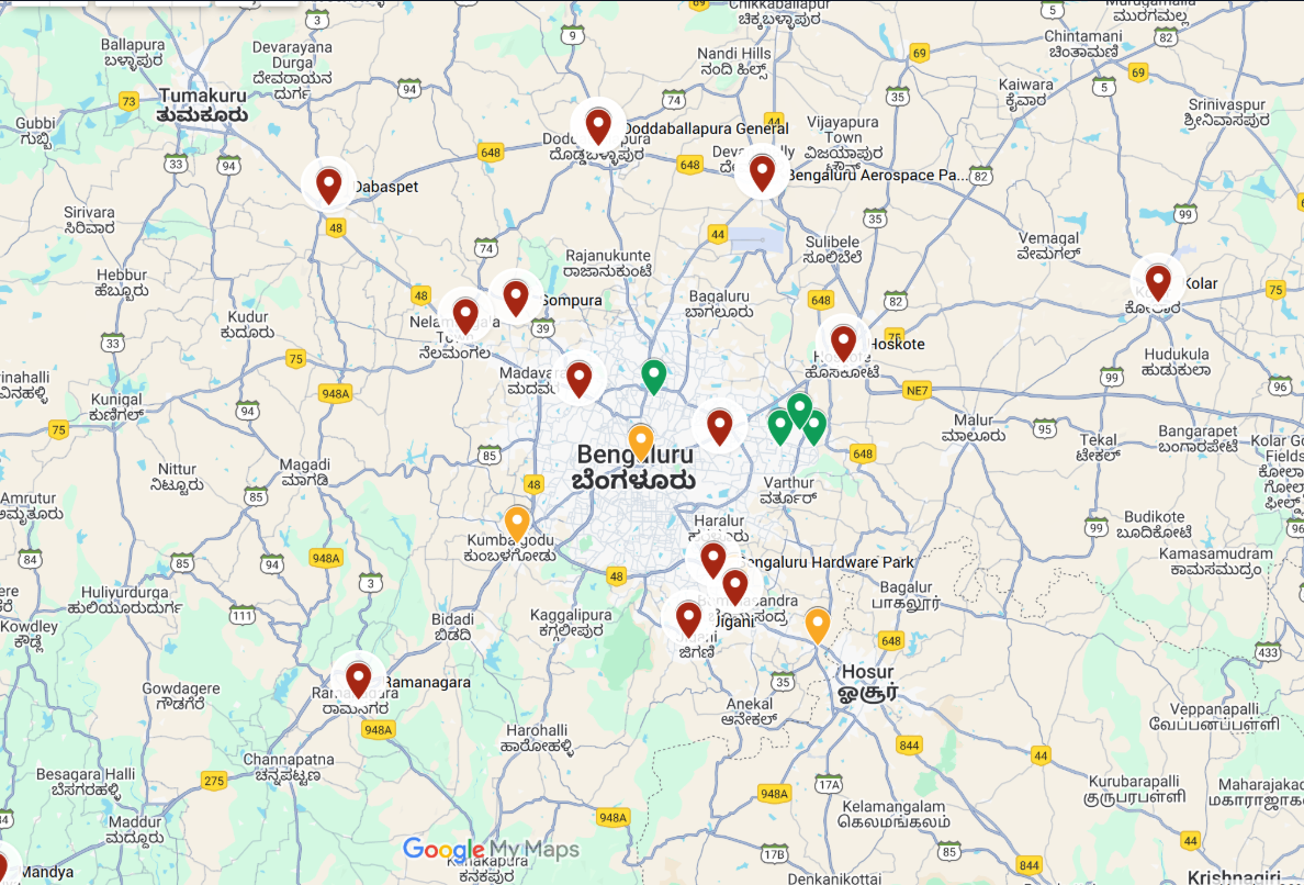 | KIADB | Doddaballapura Industrial Area | Red, Orange, Green | N/A | Industrial. |